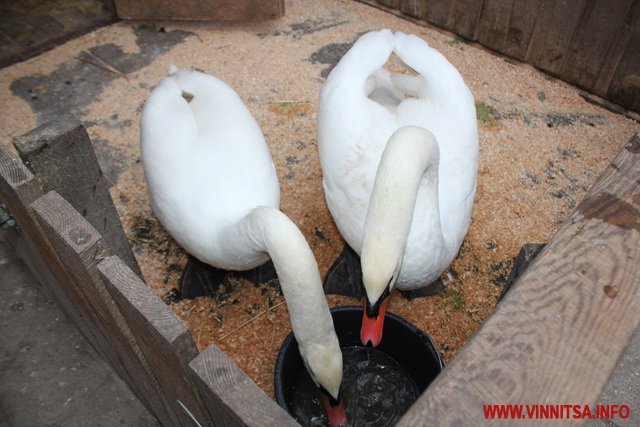«Для того, щоб розмістити таких прекрасних гостей, ми спеціально в інше місце перевезли качок, які раніше там жили. Цей вольєр продезінфікували. Підготували усі належні умови. Годувати лебедів домовилися спільно з «Вінницязеленбудом». Вони полюбляють пшеницю, кукурудзу, висівки, сухарики. Вчора спробував підгодовувати мілкою рибкою. Лебідь дуже дружелюбним виявився. Він їв карасиків у мене з руки. Так акуратно, аби не зачепити мене. Сподіваюся, наше білокриле поповнення сподобається діткам. Бо роздивитися цих птахів можна зовсім зблизька. Є ще одне сподівання, що ця парочка весною подарує Вінниці поповнення», - розповів господар «Зоодворику» Віталій Веденко.
