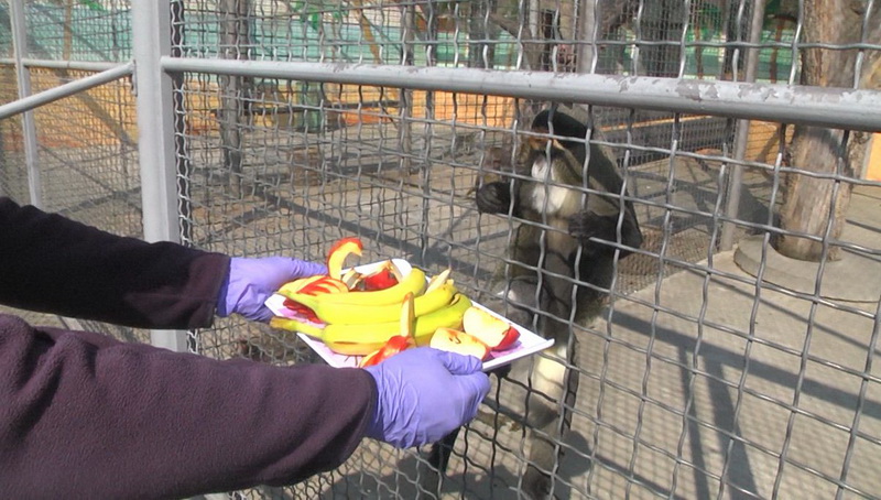 Сюрприз підопічні оцінили. Як і решта приматів зоопарку. Яблуками та бананами Іван пригостив багатьох звірів зоопарку.