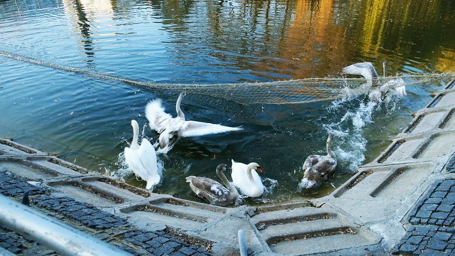«Сьогодні ми виловили наших шестеро красунчиків з озера і перевезли їх до зоодворика, що в Центральному парку. Там лебеді будуть жити до весни у тепленькому вольєрі, який ми підготували та продезінфікували. Звісно, їм буде трішки тіснувато, адже діти наших Адама і Єви здоровані, більші за своїх батьків», –