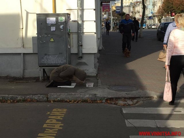 Вирушили на те саме місце, де працювала псевдо-бабця. Потік людей тут великий, адже все відбувалося прямісінько на центральній вулиці. Один бік веде до міськвиконкому та облдержадміністрації. В другий бік до Кафедрального Собору та відомого фонтану. Для експерименту обрали куртку з об’ємним капюшоном, аби не було видно обличчя. Руки також приховуємо. Аби не застудитися - під коліна картонка. Та стояти навколішки важко. Трясти тілом для більшої жалісливості – дуже боляче. Одним з перших небайдужих виявляється літній чоловік. Кинув 15 копійок, поцікавився, чому на місці старенької бабці нова людина.