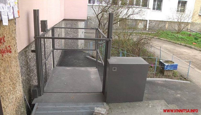 «В рамках програми капітальний ремонт у житловому фонду, одним з не менш важливих процесів – є доступність співвласників будинків до під’їздів. На сьогодні облаштовуються коштом коштів міського бюджету. Непоодинокі випадки є, коли самі співвласники мають намір і готові до співфінансування на ці заходи. Пандуси можуть сягати 40-50 метрів. Займають значну територію двору. За міський бюджет, торік, облаштували два таких підіймач. Протягом цього року ще буде встановлено. Дешевше і краще візуально виглядає саме підіймач. По ДБН-ах є певні нахили по висоті сходинок. Коли ми говоримо про метр, два метри сходинки, зрозуміло, що тут конструкція буде досить масивна. Там буде значна кількість метражу по металу. Зрозуміло, що це здорожує вартість. Така конструкція може коштувати - 200 і 300 тисяч гривень такий пандус. Коштує у межах 100 тисяч гривень. Враховуючи, менший обсяг території під підіймач, легше облаштувати його. Незначне споживання електроенергії. Двигуни, які здійснюють підйом, менше споживають електроенергії», - прокоментував Роман Фурман, директор Департаменту житлового господарства у Вінниці.