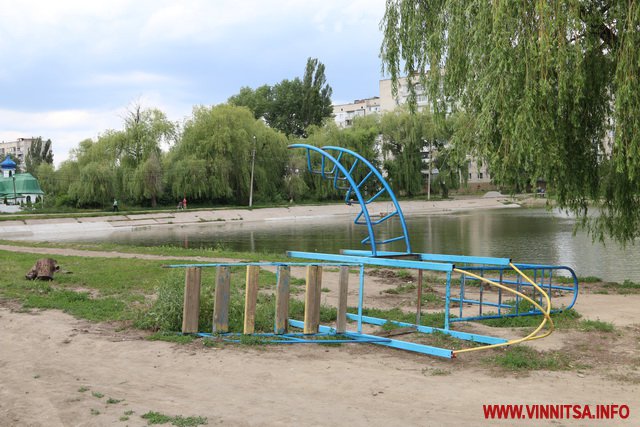 Узбережжя озера з парком чи не найбільша у Вінниці зона відпочинку біля води. Але багато років поспіль купатись там заборонено через небезпечні плити, якими укріплено берег. Це досить старі конструкції, з яких стирчить арматура.