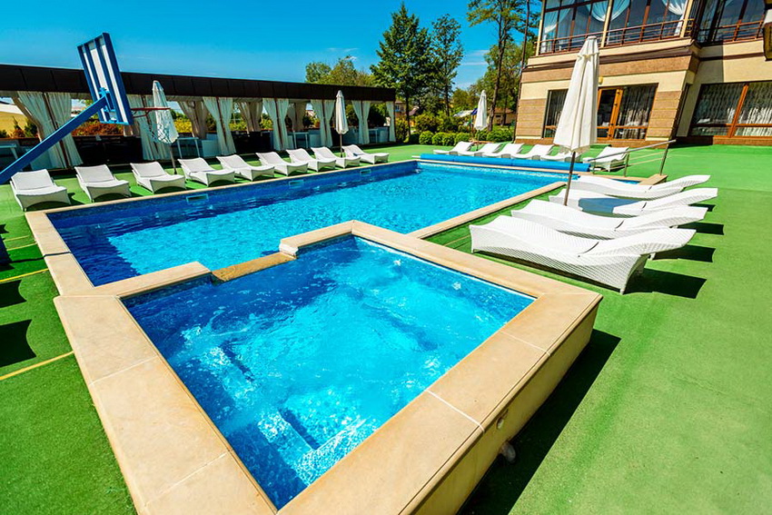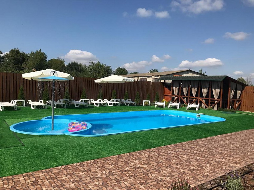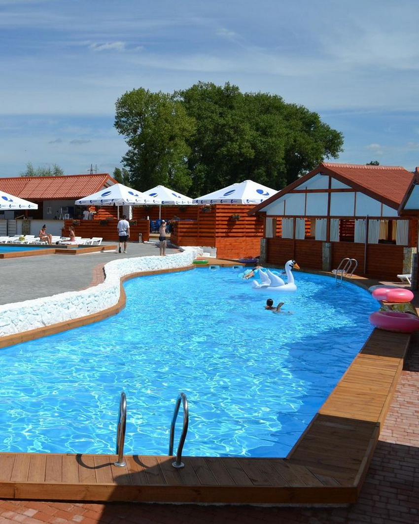 Відпочинок біля басейну. Одна година відвідування басейну коштує 70 гривень. Повний день (будній) – 250 гривень. Вихідний – 300 гривень. Для дітей до 3 років – безкоштовно.