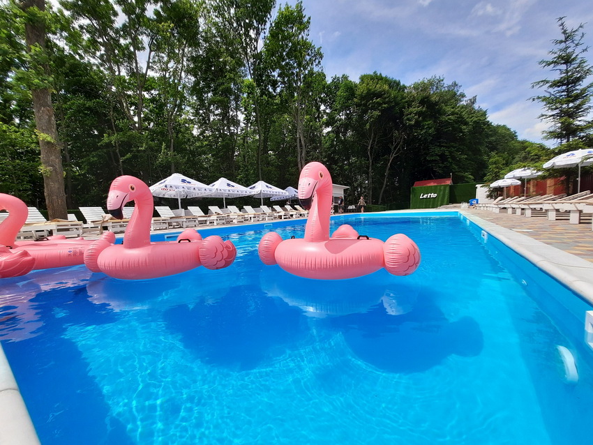 На території закладу є готель, SPA-центр та басейни - великий басейн для дорослих і маленький для дітей. Вартість відвідування басейну дорослими у вихідні та святкові дні - 250 грн, в будні – 200 грн. Діти зростом до 140 сантиметрів у вихідні – 150 гривень. На території є басейну бар з прохолодними напоями та снеками (бургери, картопля фрі).