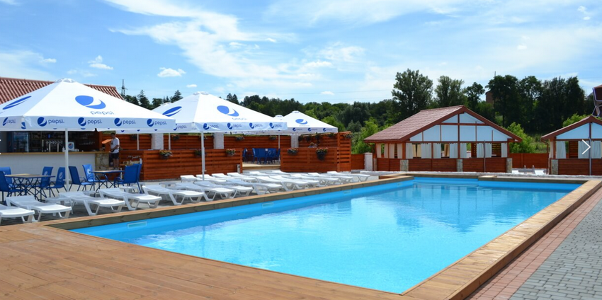 На території відпочинкового комплексу до послуг гостей працює три відкритих басейни - великий, дитячий, басейн з гідромасажем. Вартість відпочинку біля басейнів для дорослих у будні дні - 150 гривень, у вихідні - 200 гривень. Для дітей (зріст до 140 см) у будні дні - 100 гривень, у вихідні та святкові дні – 150 гривень, діти до 3х років - безкоштовно. Шезлонги входять у вартість (за наявності).