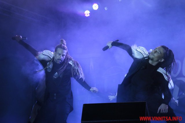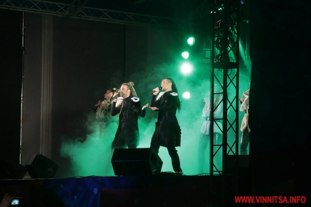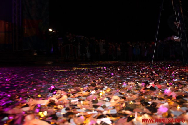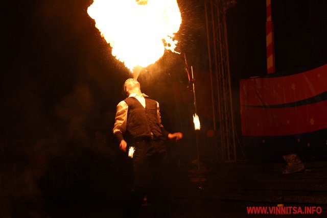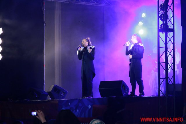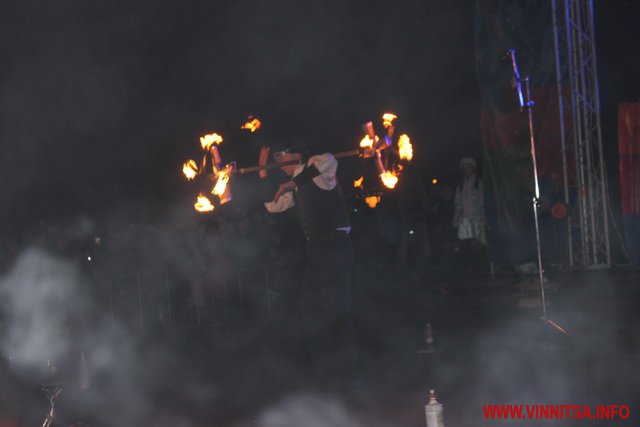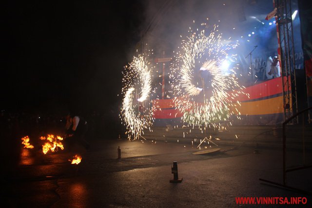 На площі біля Літнього театру вінничанам влаштували фаєр-шоу, після чого керування мікрофоном собі забрали запальні ведучі та актори шоу «Країна У» - Дмитро Голубєв та Олександр Теренчук.