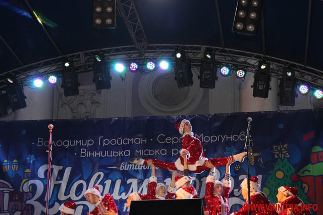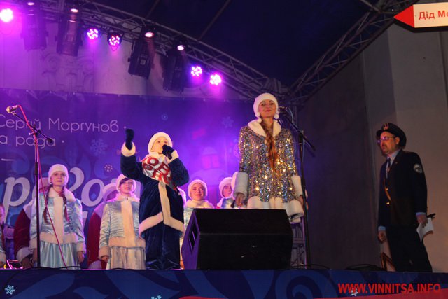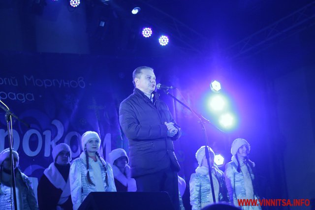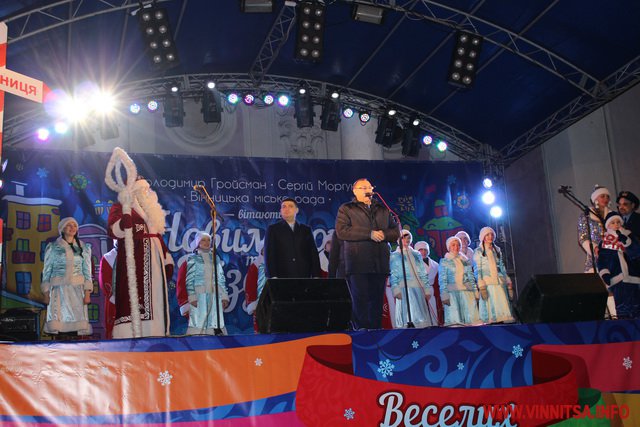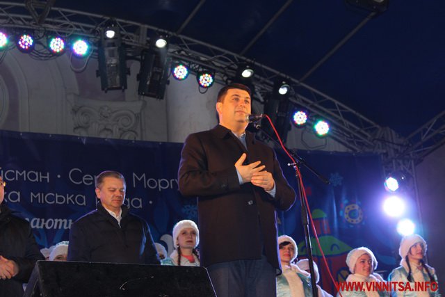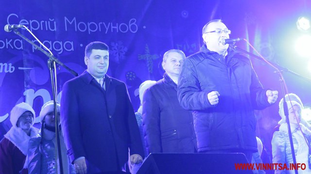 Відкривали центральну ялинку голова Верховної Ради Володимир Гройсман, голова ОДА Валерій Коровій та мер Вінниці Сергій Моргунов, які привітали всіх вінничан з новорічними святами.