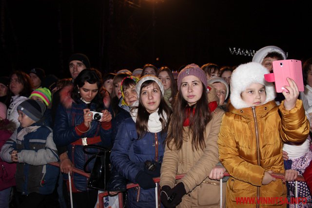 Кілька тисяч вінничан зібралося в парку, дітвора, пенсіонери і закохані підтанцьовували, співали та фотографувалися у святковий зимній вечір. Новорічну атмосферу хотілося б мабуть кожному доповнити тільки снігом та морозцем.