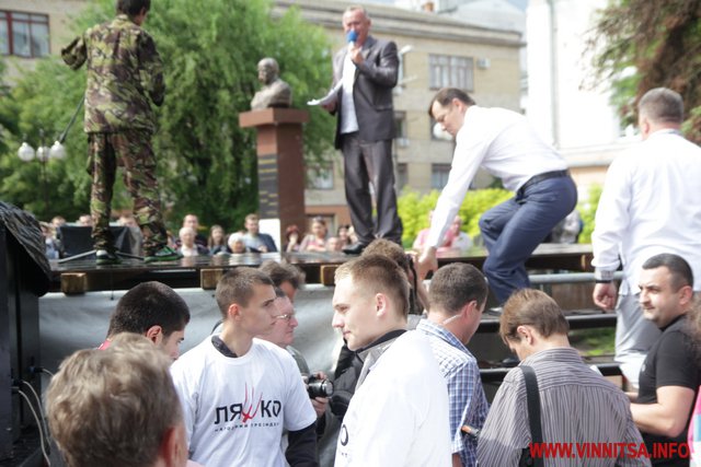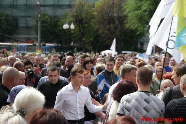 Показовим став 21 травня виступ у Вінниці кандидата у Президенти України та лідера Радикальної партії Олега Ляшка. Справа утім, що радикал Ляшко виступав перед вінничанами на площі Небесної сотні, де два тижні до цього виступав ще один кандидат Анатолій Гриценко, а у квітні тут була Юлія Тимошенко.