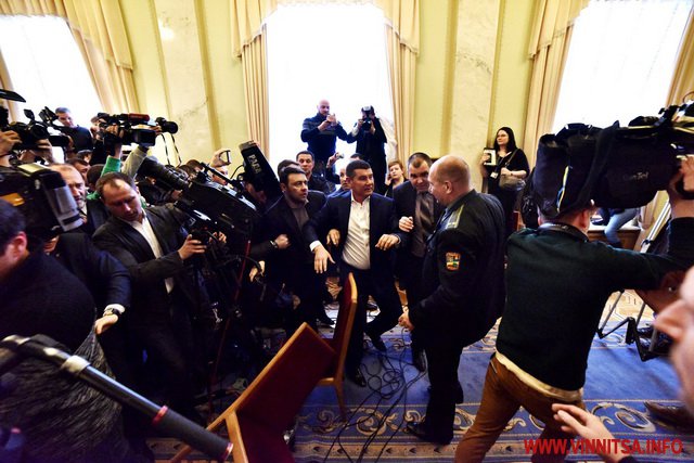 Сутичка почалася після того, як соратники Ляшка спробували не впустити Мельничука до сесійної зали. Ляшко назвав Мельничука "тушкою", через те що він увійшов до групи "Воля народу".