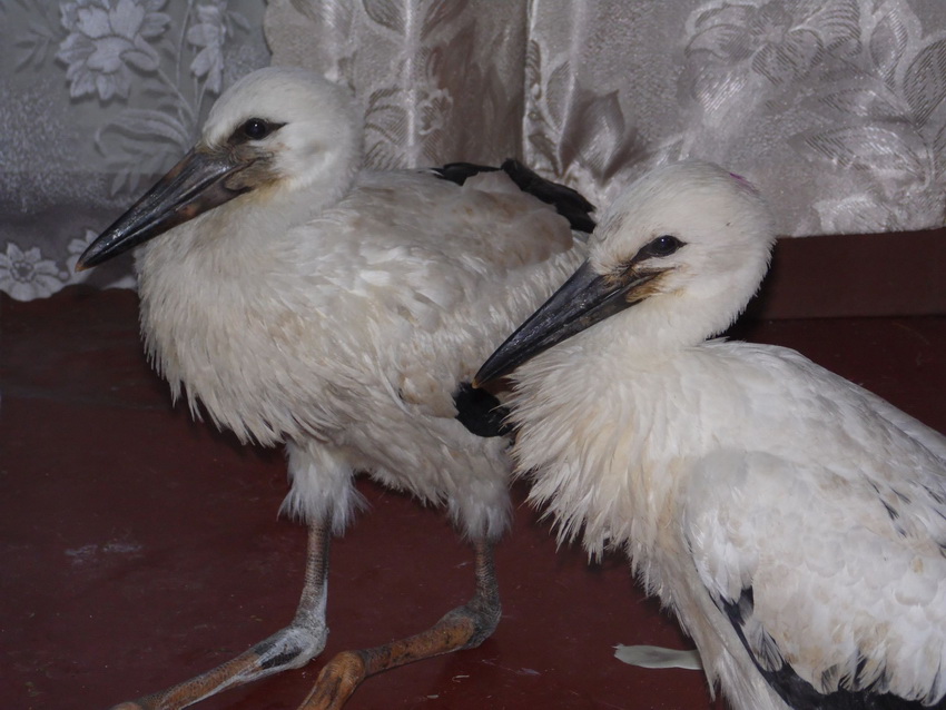 «Це двоє малюків, які випали з гнізда. В одного зламане крило. Загалом в цьому році я прийняв 7 лелек, із них 2 не вижили, оскільки мали серйозні травми, а 5 лелек поїхало в «Місячну Долину», з них 3 залишилось на «пмп», а 2 полетіло в вирій».