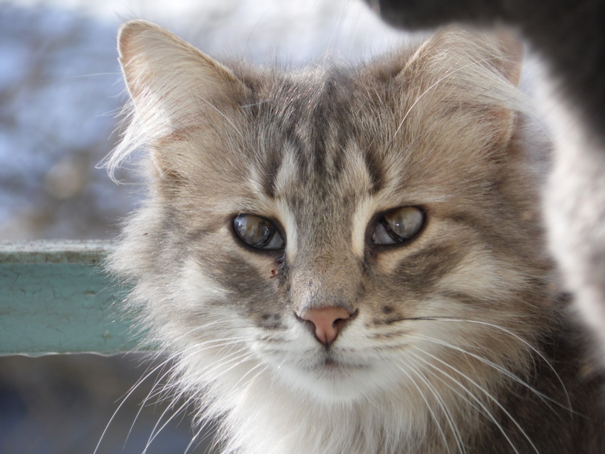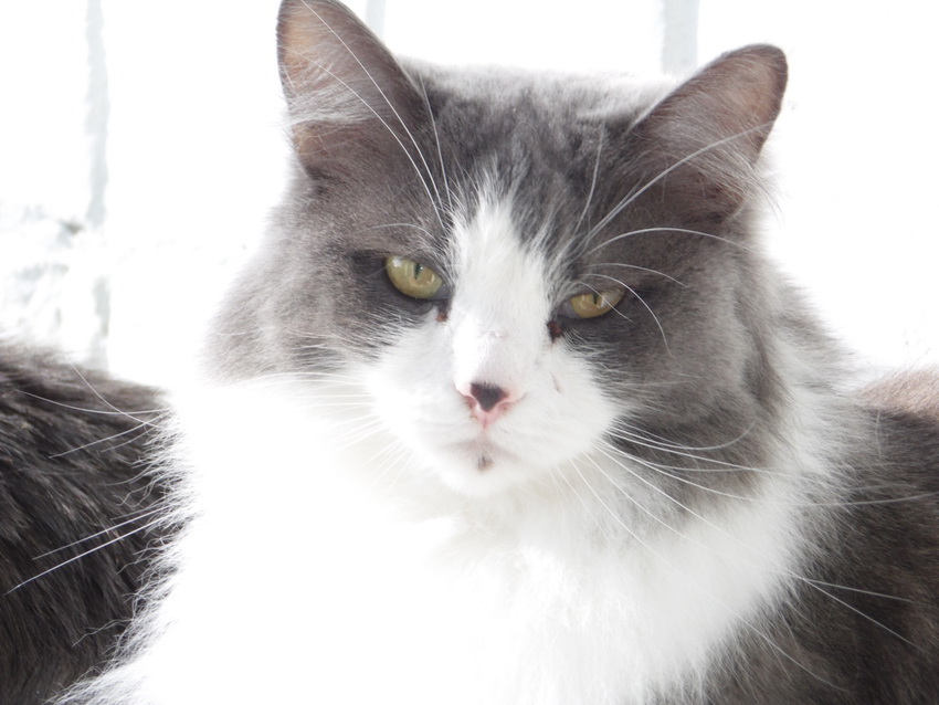 «Народився у мене вдома від врятованої вуличної кішки, разом з іще 4 кошенятами. Був прилаштований у родину, але через 11 днів мені повернули його дуже хворим. Три місяці ми боролися. Вдалось зберегти йому життя і очі, а от зір - лише частково. Колобок практично нічого не бачить. Залишився у мене, бо ніхто не захотів взяти його до себе».
