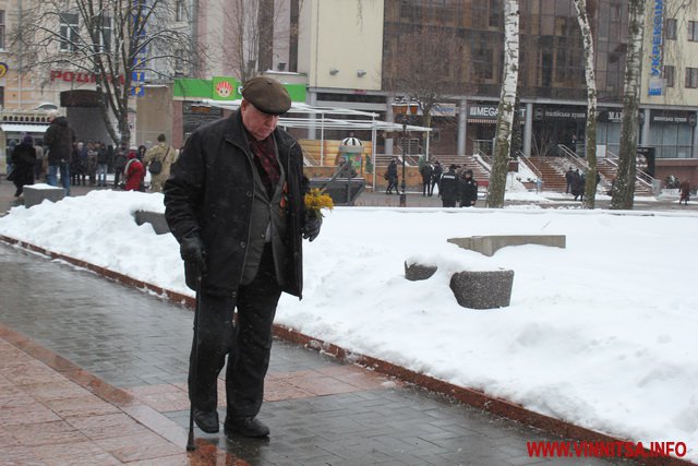 Покладання закінчилося менш ніж за півгодини. Через сніг всі швидко почали розходитися. На урочистість запізнився Григорій Белохатнюк, інвалід І групи. З невеличким букетиком мімози він підійшов до Меморіалу визволення.