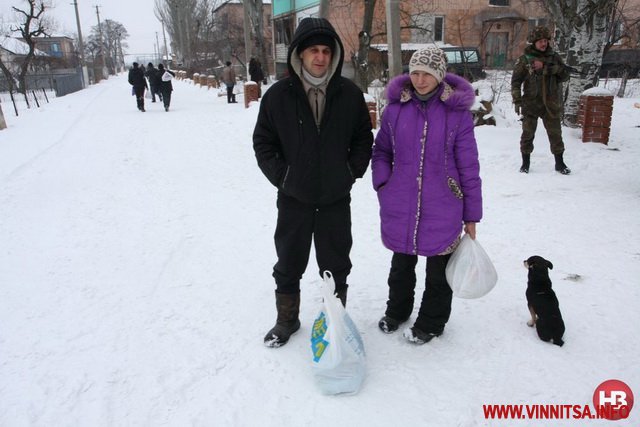 “Вот попал он под обстрел и теперь говорит, что боится сейчас везти хлеб и продукты,— рассказывает 22‑летняя Наталия Читилина.— Здесь стоит Нацгвардия. Они нам помогали. До Нового года давали крупы, сахар”.