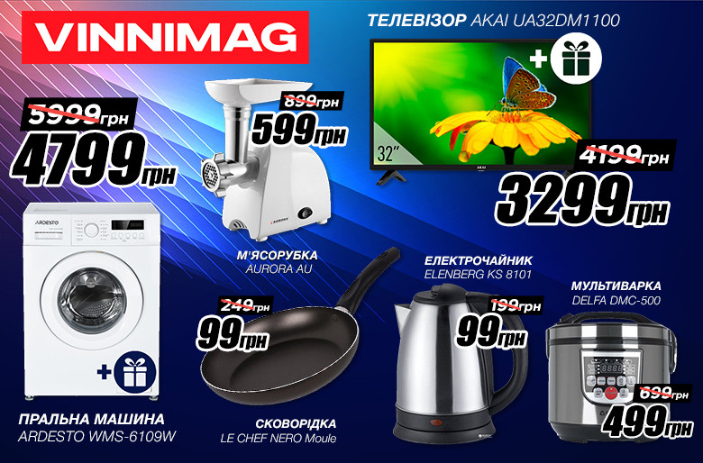 А от разом з телевізором AKAI UA32DM1100 лише за 3299 грн, ви отримаєте ще й подарунок. З приємним сюрпризом залишитесь придбавши пральну машину Ardesto WMS6118W - 4799 грн + подарунок