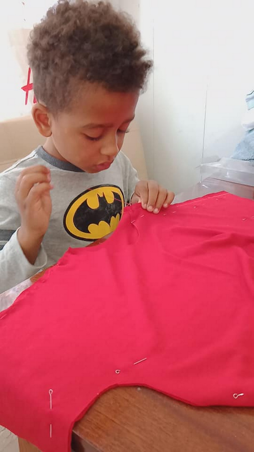«Матюша, так називаємо сина дома, від самого ранку суботи, як прокинувся, вирішив зробити щось цікаве. Думав, думав, аж раптом каже, я буду шити собі футболку. У мене був залишок яскраво-червоної тканини. Я з ним нею і поділилася. Над викройкою він довго не думав. Взяв свою стару футболку, по ній і зробив лекал. Як тримати голку у руках, він добре знає. Бо я шию, моя мама шиє. Кілька разів йому показували і на практиці допомагали. Тож, за півгодини, практично, нова річ у його гардеробі вже була готова. Я ще й пожартувала на своїй сторінці, що ми готові приймати замовлення. А Матюша зауважив, що готовий продавати свої футболки по 30 гривень за одну», - розповідає Вінниця.info Ольга.