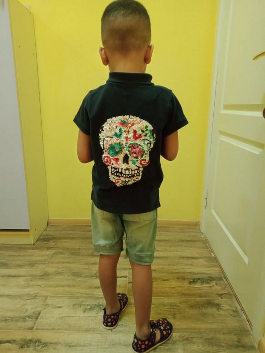 «Моя знайома передала з паєток блискучий череп. Син його нашив на чорну футболку, щоб серед друзів викликати фурор. На Хелловін готує костюм зомбі», - зауважила Ольга.
