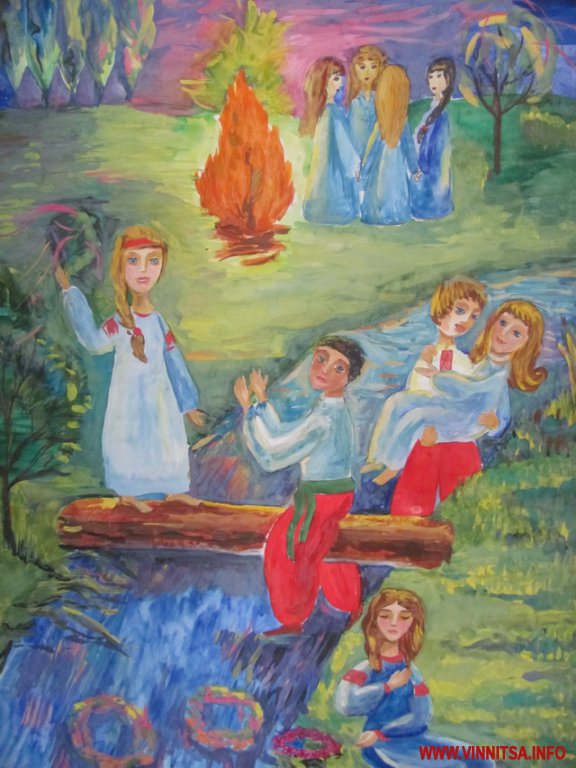 "Ой, на Івана, на Купайла" (папір, акварель) Анни Слободянюк, 16 років. Викладач: Окуленко
