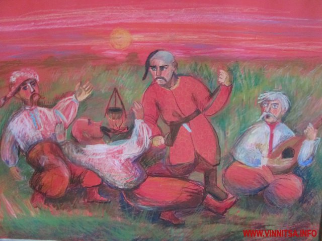 "Козацькі розваги" (папір, пастель) Владислава Лівінського, 14 років. Викладач: Іваненко Р.Ф.