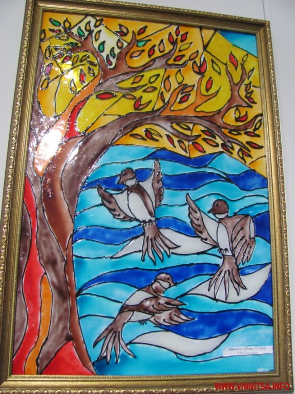"Осінній пейзаж" (скло, вітражні фарби) Ганни Шаповал, 15 років. Викладач: Окуленко С.Л.