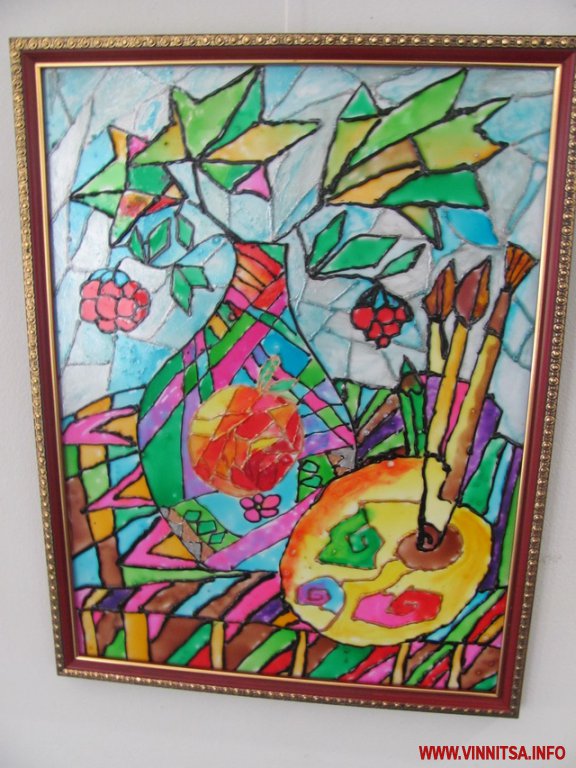 "Натюрморт" (скло, вітражні фарби) Анни Шевчук, 10 років. Викладач: Жукова С.А.