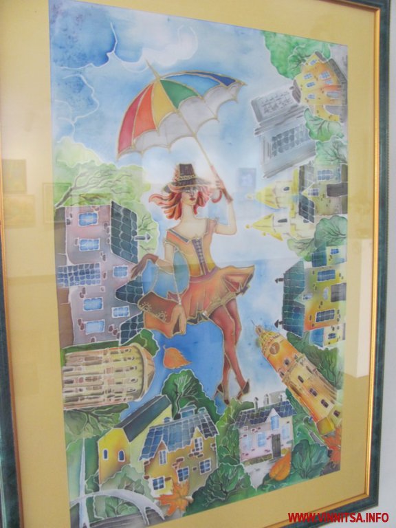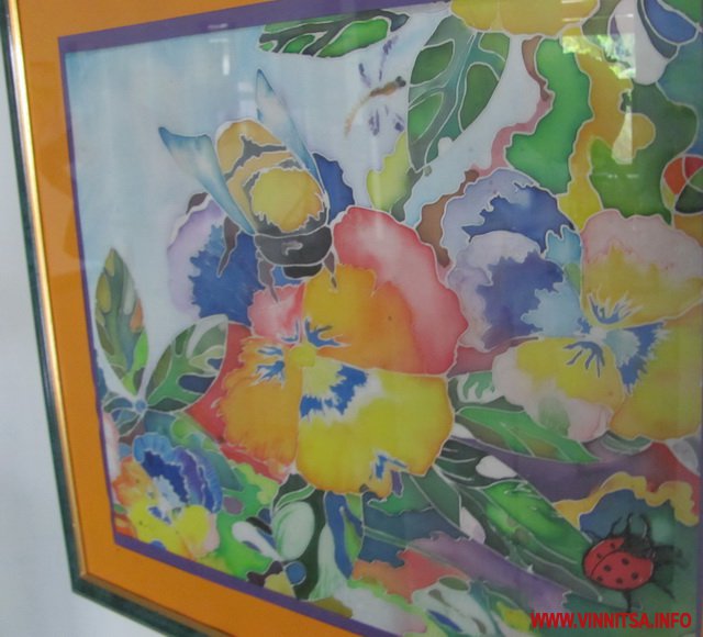 На виставці представлено більше півсотні картин, написаних акрилом і пастеллю, олією і гуашшю. Окреме місце займають графіка, граттаж, витинанки і батік, а найдовше відвідувачі зупиняються біля вітражів - яскраві розписи по склу нікого не залишають байдужими! Мальовані роботи доповнені творами декоративно-прикладного мистецтва. Декоровані квіти, аплікації, розписні керамічні вази - все зроблено не тільки з душею і теплотою, а й - на найвищому рівні.