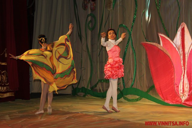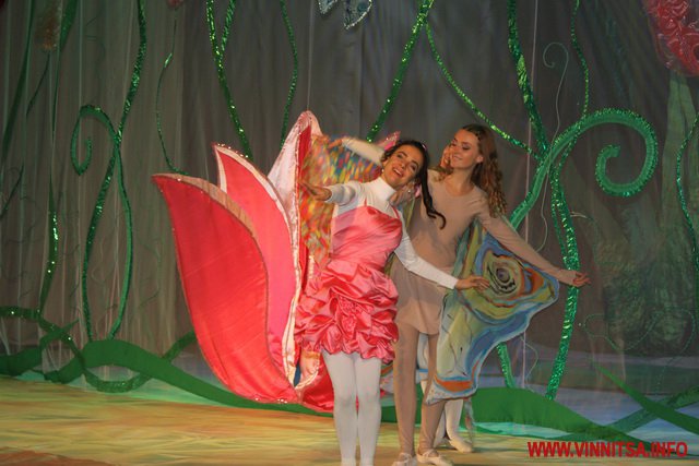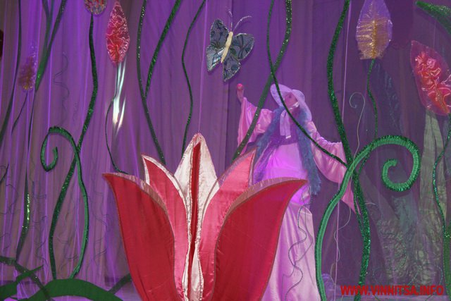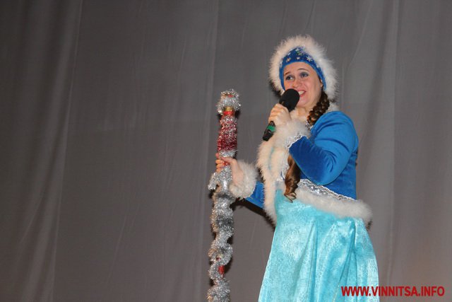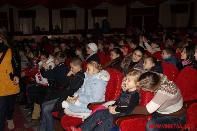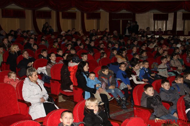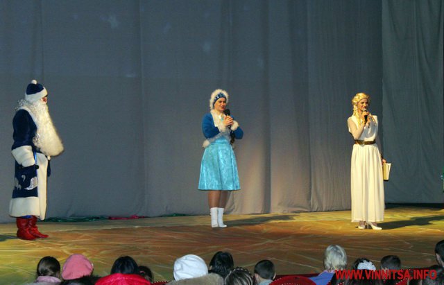 Малечу розважали Дід Мороз, Снігуронька та театральна муза Мельпомена. Потім дітвора подивилась виставу «Дюймовочка та метелик», яку підготували для них актори театру. Після вистави всі учасники новорічного свята отримали солодкі подарунки.