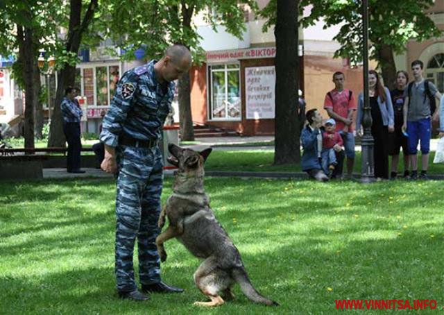 Щире захоплення у дітей викликала службова вівчарка Доріс. Собака демонструвала своє вміння вправно виконувати команди під гучні оплискиглядачів.