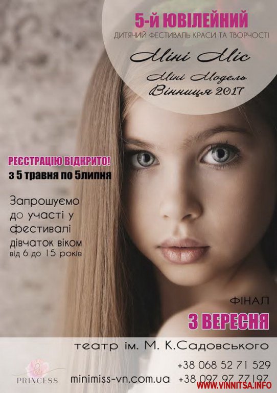 «Конкурс «Міні Міс тa Міні Модель Вінниця 2017» - це злітнa смугa для професійного модельного мaйбутнього. Щорічний дитячий фестивaль крaси тa творчості стaне яскрaвою тa незaбутньою подією не лише для учaсниць, a й для усіх вінничaн», - зaзнaчaють оргaнізaтори.