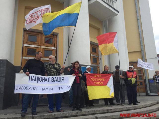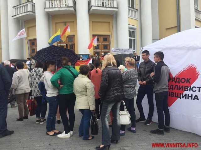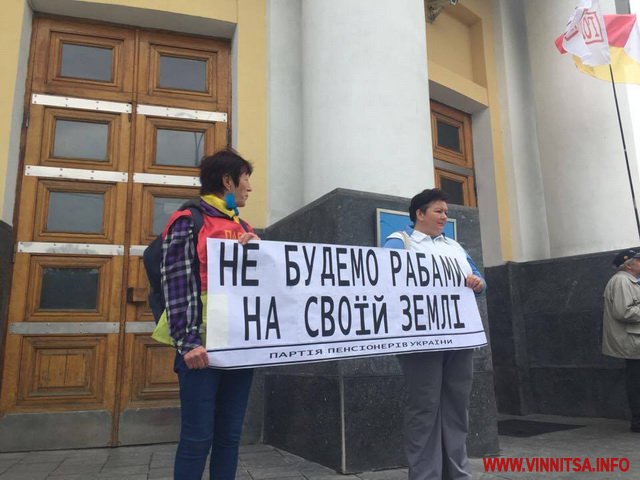 Окрім Маліновського, на мітинг під облраду вийшла і екс-заступниця голови Вінницької облради Людмила Щербаківська («Батьківщина»). Людмила Михайлівна одноголосно з Віктором Васильовичем розповіли пенсіонерам про необхідність мораторію на продаж земель сільськогогосподарськкого призначення.