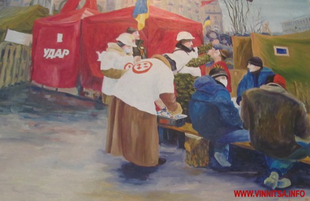 - А у Вінниці нашу колекцію доповнив своїми роботами вінницький художник Ігор Зозуля. Цьому ми всі дуже радіємо, адже так кожен митець вливає свою неповторну частинку душі і серця, - ділиться авторка кількох робіт Марія Ділай. - Дуже сподіваюся, що особисті переживання художників, вилиті на полотні, не дадуть забути революцію, яка перевернула всесвіт і наші свідомості.