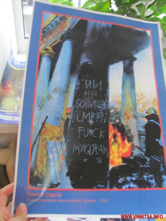 - Плануємо презентувати виставку і за кордоном. Вже є домовленості із Польщею та Німеччиною, - розповідає координатор виставки Володимир Ханас. - Нас дуже тішить, що у кожному місті до нас долучаються зі своїми роботами нові художники, а цікаві ідеї висловлюють чисельні громадські діячі. Наша виставка, як і у свій час Майдан, подає неймовірний приклад самоорганізації. Зокрема, лише за кілька годин у Вінниці нам вдалося вирішити кілька волонтерських питань, пов’язаних із допомогою нашим військовим у зоні АТО.
