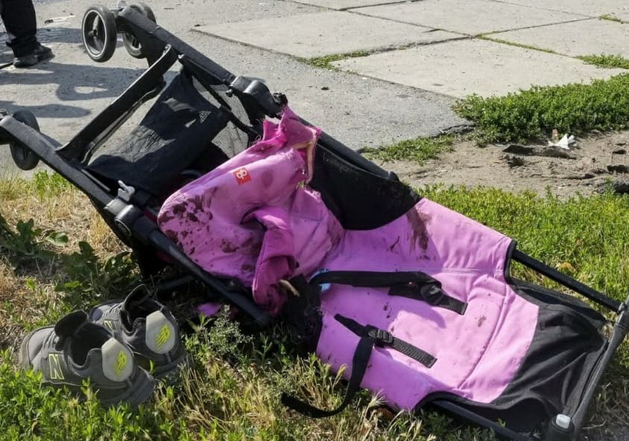 Ще пару хвилин бігала, шукала людей, щоб допомогли витягнути Лізу з візочка. Навкруги мертва тиша. Сіла і почала кричати. Потім відчула сильний біль і побачила як на землю ллється кров, почала задихатися.