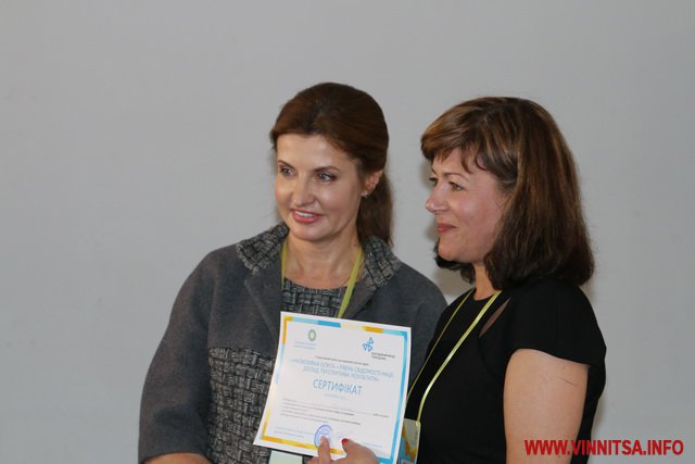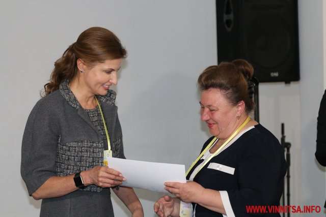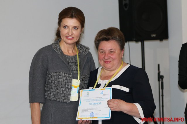 40 працівникам освіти регіону, які пройшли тренінг, Дружина Президента вручила сертифікати.
