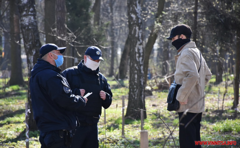 У парку ім. Ющенка, в якому за новими правилами заборонено прогулюватися, лише за умови вигулу домашніх тварин або ж у випадку службової необхідності, – людей досить велика кількість. Там також патрулюють поліцейські. Вони зупиняють перехожих, які йдуть без масок. В той же момент, люди дістають маски з кишень або підіймають з підборіддя. З ними проводять роз’яснювальні бесіди. За словами поліцейських, від ранку вони зустрічали вже кілька людей, які нехтували правилами, однак під час розмови, маску все ж знаходили у себе.