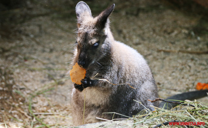 При вході до зоодворику, відвідувачів по праву сторону зустрічає сім’я кенгуру. Нещодавно в пари вперше народилося маля, працівники звіринцю уже встигли зняти на відео, як новонароджене кенгурятко показує мордочку. З маминої сумки для фото – не вилазить, хоча працівники кажуть, що тваринка уже частенько гуляє без мами.