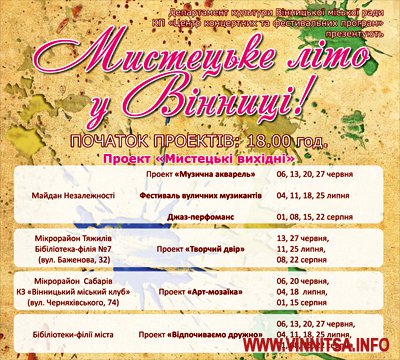 6 червня у Вінниці стартували «Мистецькі вихідні». Впродовж літа кожен вінничанин зможе долучитися до цього проекту.