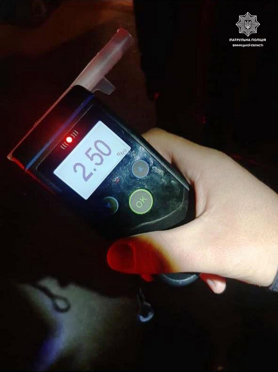 В організмі порушника виявили 2,5 проміле алкоголю, що майже в 13 разів перевищує допустиму норму.