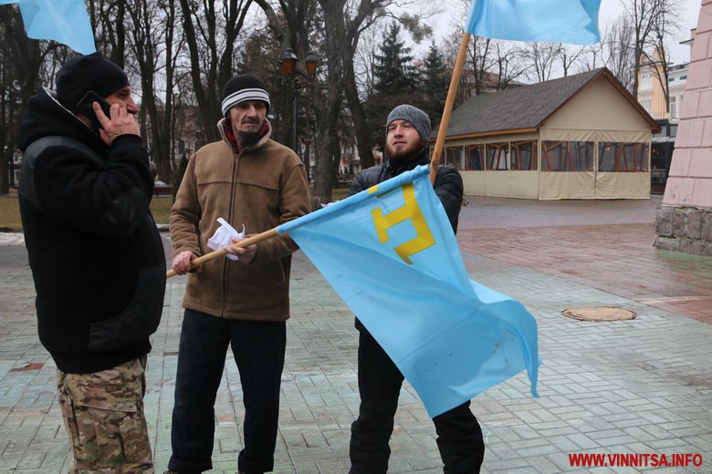 Сьогодні ці події згадують по всьому світу. Акція підтримки відбулася і у Вінниці. Кілька чоловіків прийшли до Вежі з кримськотатарськими прапорами. Вони – одні з багатьох, хто покинув рідну батьківщину.
