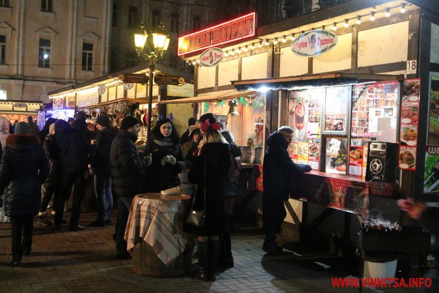 У Вінниці на Європейській площі вже традиційно на новорічні свята розгорнувся різдвяний ярмарок. Щодня тут доносяться аромати глінтвейну, кави, шашлика та гарячої випічки. Меню для гостей тут різноманітне, а головне, практично, все готується в присутності замовника. Окрім страв на ярмарку продають посуд, сувеніри, вироби зі шкіри та вовни, гірлянди…