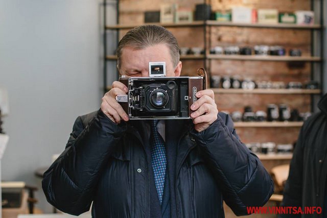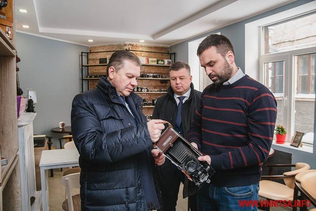 Мер Вінниці Сергій Моргунов відвідав кав’ярню-музей фотоапаратів «Монокль» та подарував закладу кінокамеру «Екран» 1961 року випуску.