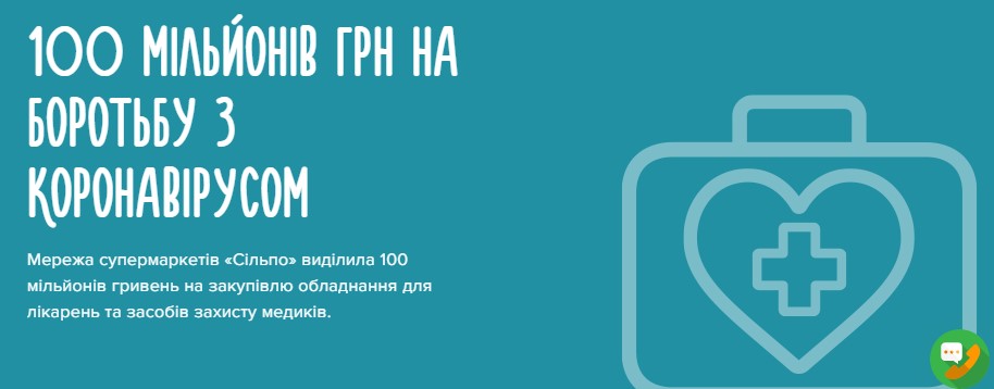 Національна мережа супермаркетів «Сільпо» виділила 100 мільйонів гривень на закупівлю обладнання для лікарень та засобів захисту медиків. Зокрема, понад 13 мільйонів гривень уже використали для оплати 12 високоякісних апаратів штучної вентиляції легенів швейцарського виробництва. Передадуть їх Вінницькій та ще 4 областям.