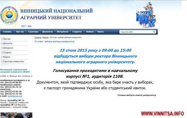 У Вінницькому Національному аграрному університеті на 15 січня було призначено вибори ректора, з найбільшою ймовірністю ректором мав стати президент університету Григорій Калетнік. Поте, з Мінагрополітики, якому підпорядковується вуз, надійшла команда про відстрочку голосування щодо обрання ректора.