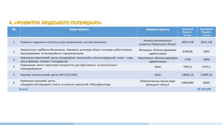 Другий проект Агенції регіонального розвитку Вінницької області «Створення інформаційно-аналітичної системи управління регіональним розвитком, як якісної підсистеми в стратегічному плануванні територій Вінницької області», бюджет якого складає 2163,37 тисяч гривень.