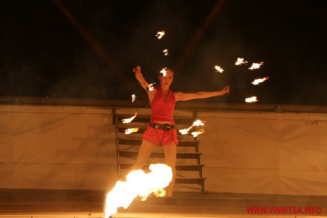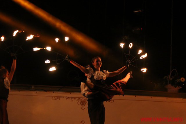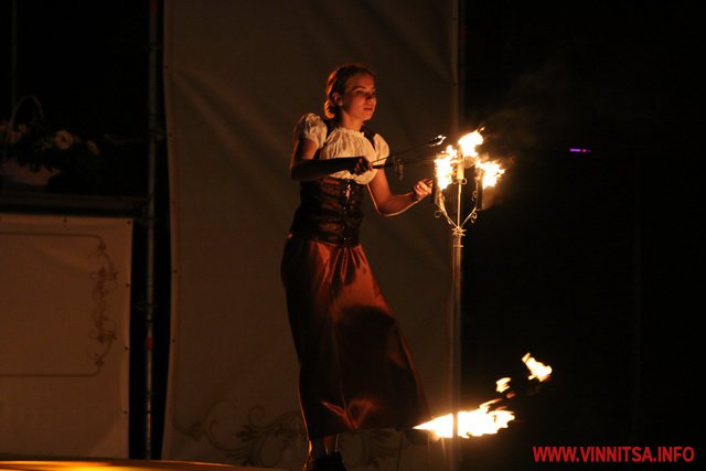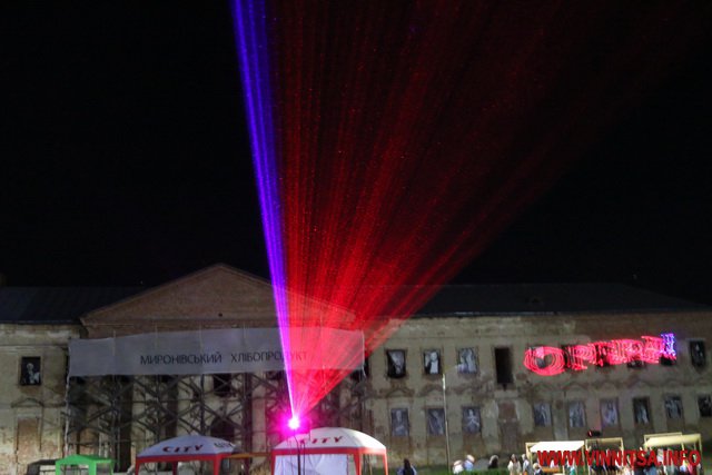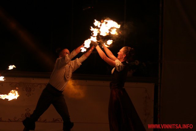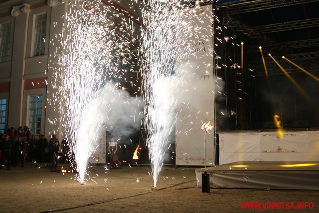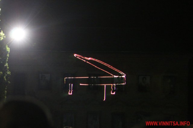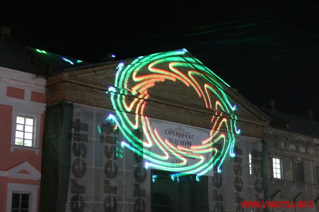 Ніч фестивалю опери розпочалася лазерними проекціями на фасади Палацу Потоцьких та вогняним шоу.