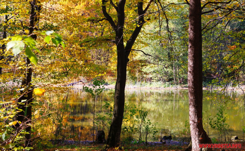 Цих два озера поєднує невеличкий ліс. Враховуючи те, що зараз осіння пора – все навкруги різнобарвне. Йдучи лісом, чути, як падає з дерев листя та жолуді.