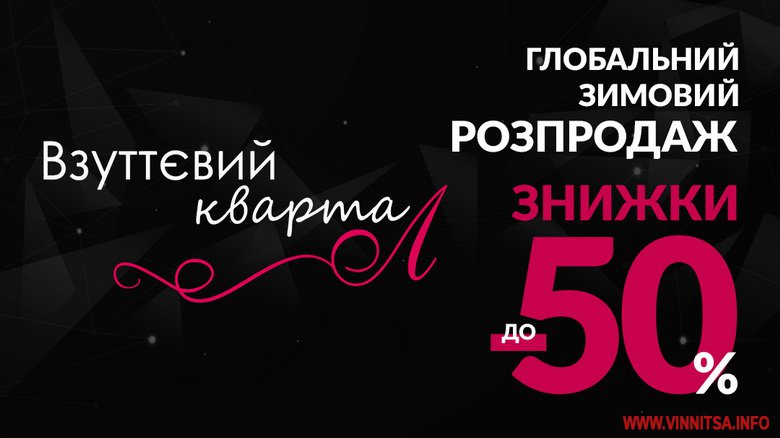 Магазини «Взуттєвий квартал» у Луцьку та «Обувной квартал» у Вінниці оголошують «чорну п’ятницю» протягом місяця. Глобальний зимовий розпродаж закінчиться 31 грудня.