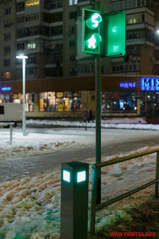 «Нове рішення з безпеки руху у Вінниці. Дублюючі пристрої світлофорів для пішоходів встaновили нa переході Келецькa-Космонaвтів, a тaкож нa перехресті A. Первозвaнного-Космонaвтів, де він прaцює в режимі жовтого миготливого.