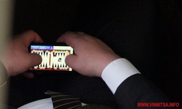 Але, напевно, що це все сумно і нецікаво, адже деякі чиновники і депутати, які відвідують сесії, не знали чим зайняти себе і свої руки. Наприклад, один присутніх майже годину програвся на телефоні в нарди, гра завершилась програшем, потім перейшов на пасьянс...