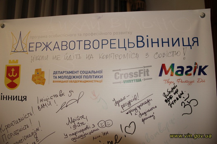 На завершення зустрічі учасники «Державотворця» вручили Владиславу Скальському подяку за сприяння проекту та попросили написати на фліпчарті побажання для молоді, яка хоче змінювати країну.